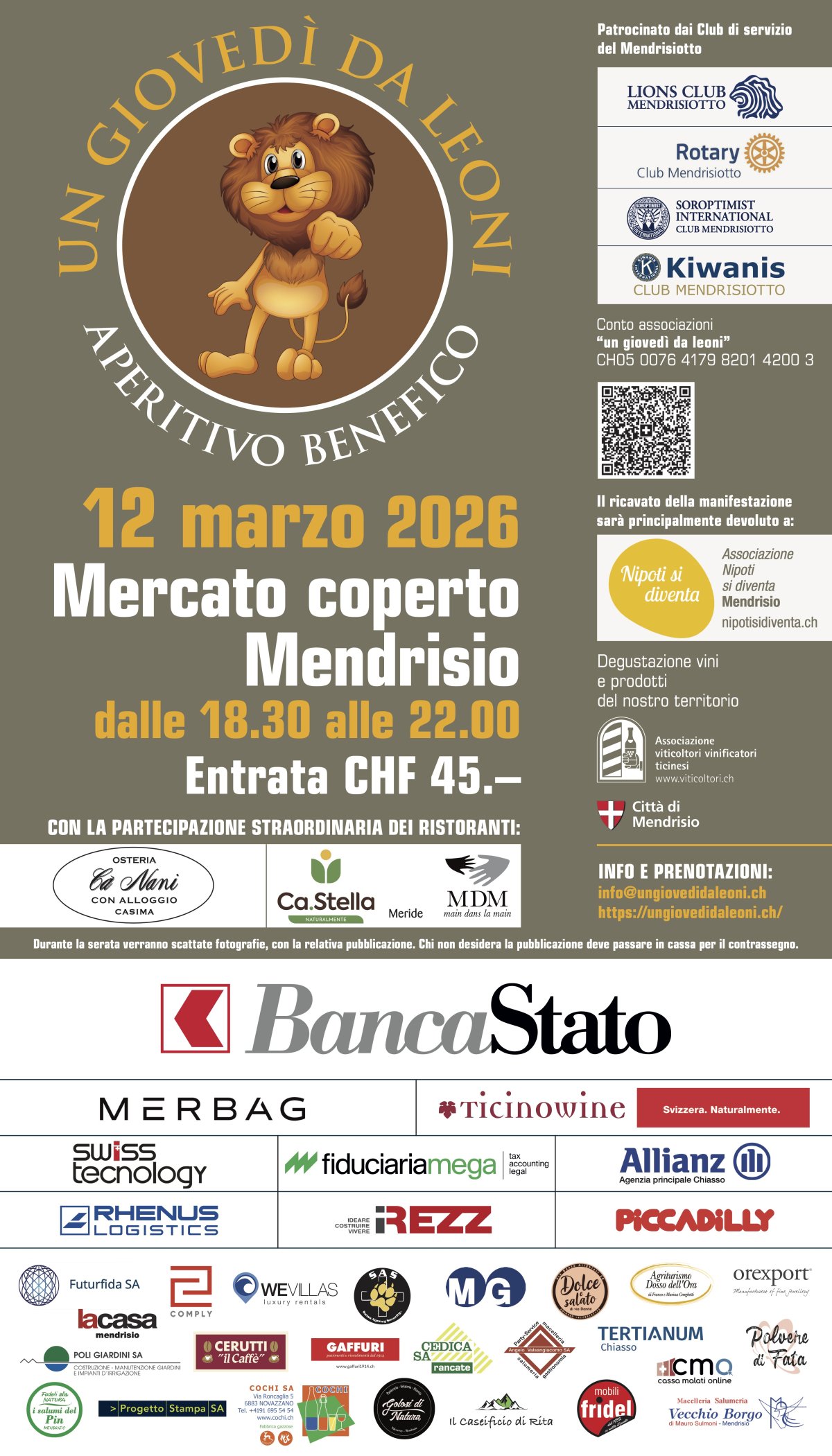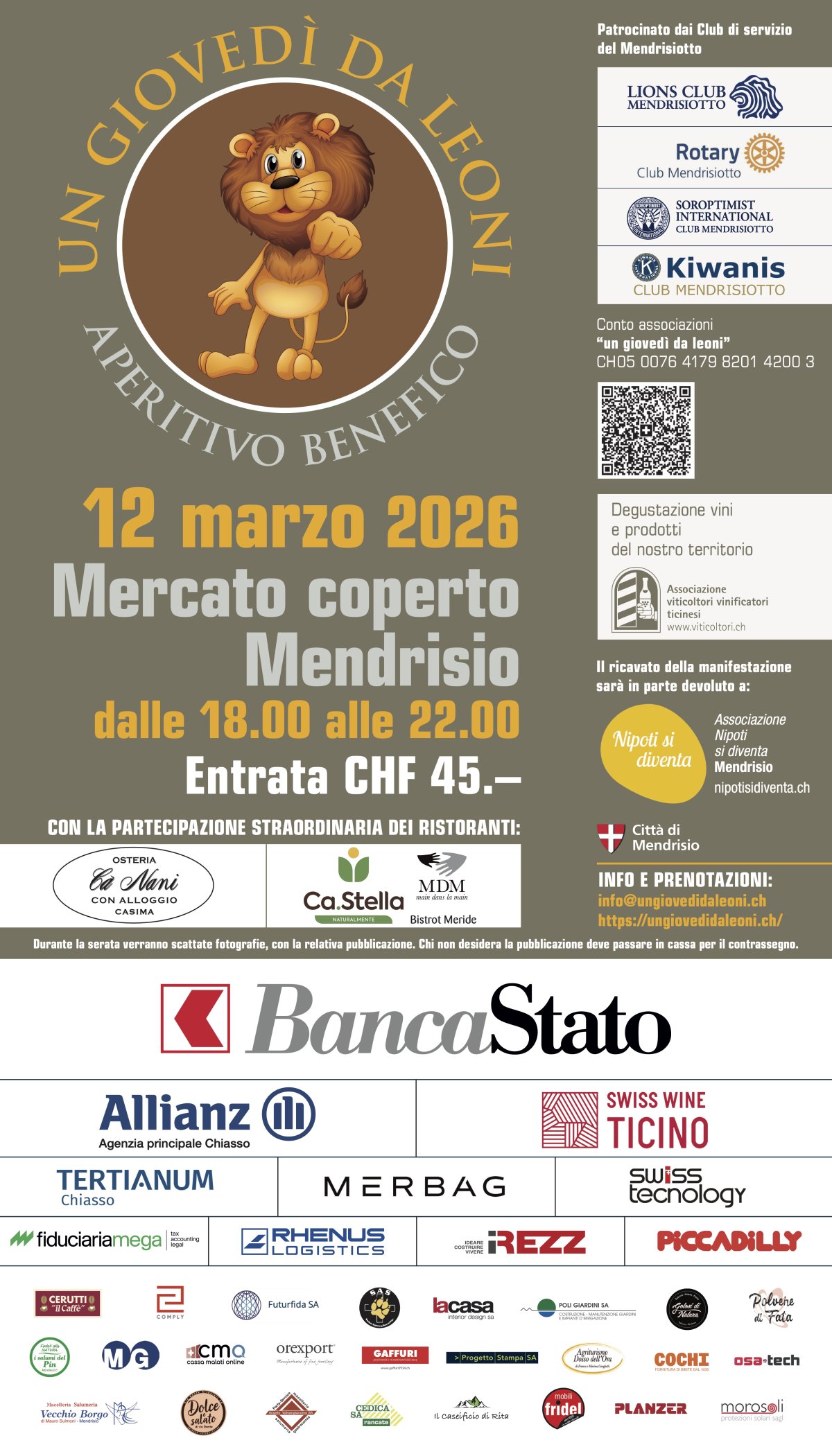 L'aperitivo benefico organizzato dai quattro club di servizio del mendrisiotto é arrivato quest'anno alla sua 7 edizione, grazie a tutti per aver partecipato al successo di questa iniziativa.
